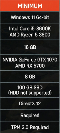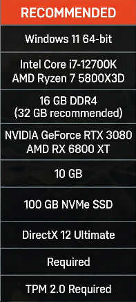 CPU: Intel Core i7-12700K or AMD Ryzen 7 5800X3D