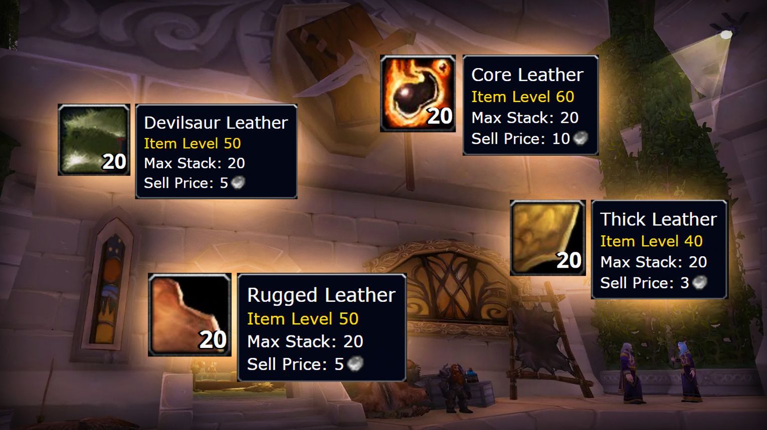 Mid-level Leatherworking crafts | Easy to farm while leveling |