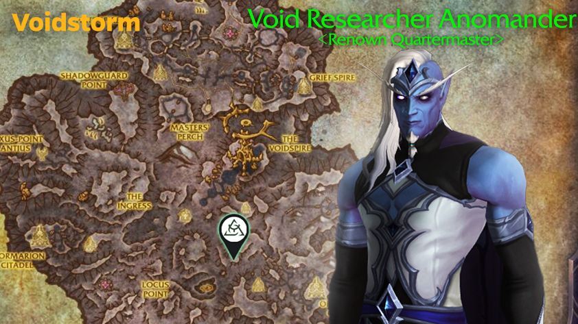 Quartermaster and location: Void Researcher Anomander <Singularity Quartermaster> is the main vendor. You'll find him at Voidstorm (Howling Ridge base).